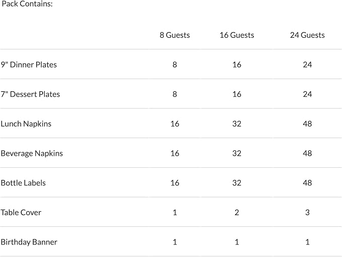 - EASY SETUP AND CLEANUP: Simplify party planning with a plastic table cover and a jointed "Happy Birthday" banner that makes decorating effortless. Disposable napkins and plates ensure quick cleanup when the festivities wind down, allowing you to enjoy more time with your guests.