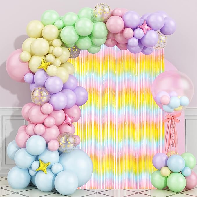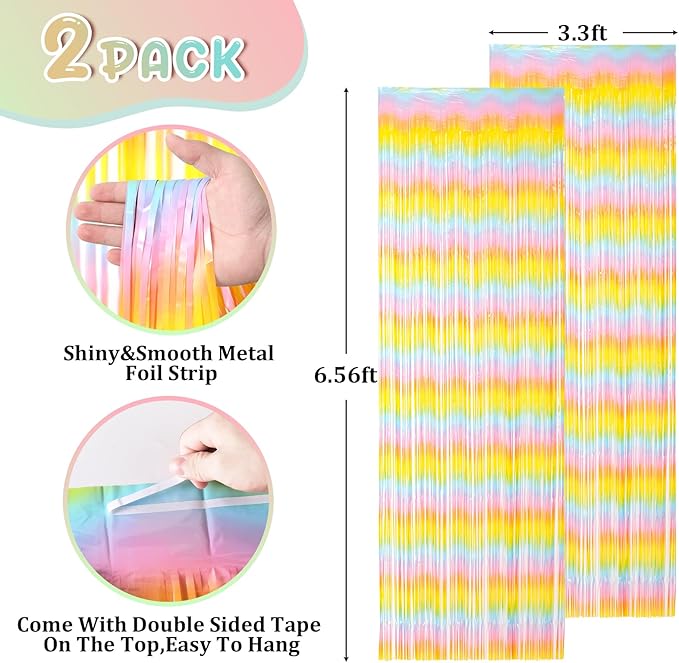 2 Pack Pastel Rainbow Foil Fringe Backdrop Curtains, Tinsel Streamers Birthday Party Decorations, Fringe Backdrop for Baby Shower, Gender Reveal, Birthday Party