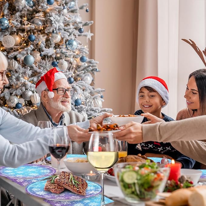 - 【Complete Winter Wonderland Party Essentials】This ultimate party pack is designed to make your winter celebration truly magical! It includes 24 large 9-inch dinner plates perfect for hearty main courses, 24 small 7-inch dessert plates ideal for treats and appetizers, 24 soft, snowflake-patterned napkins, and 24 high-quality forks for an elegant dining experience!