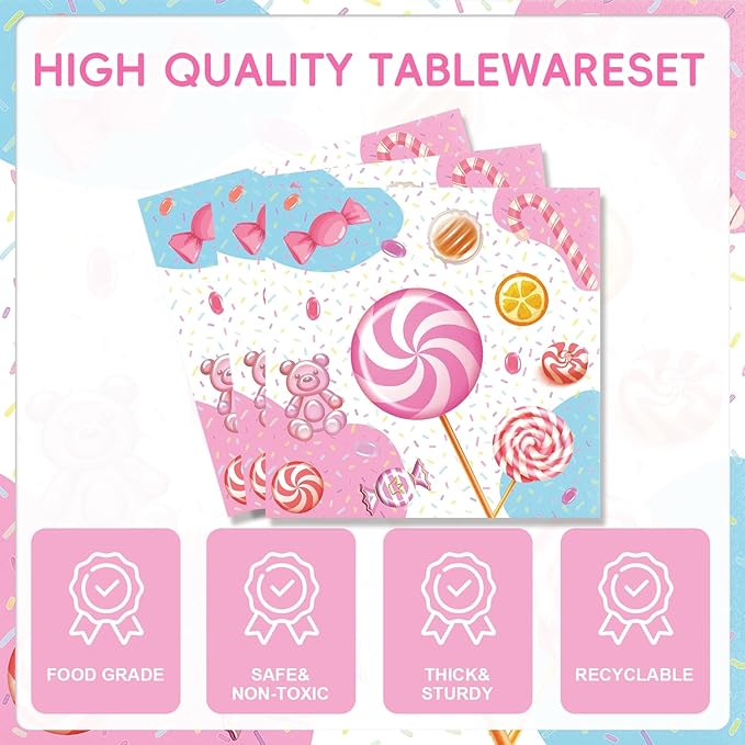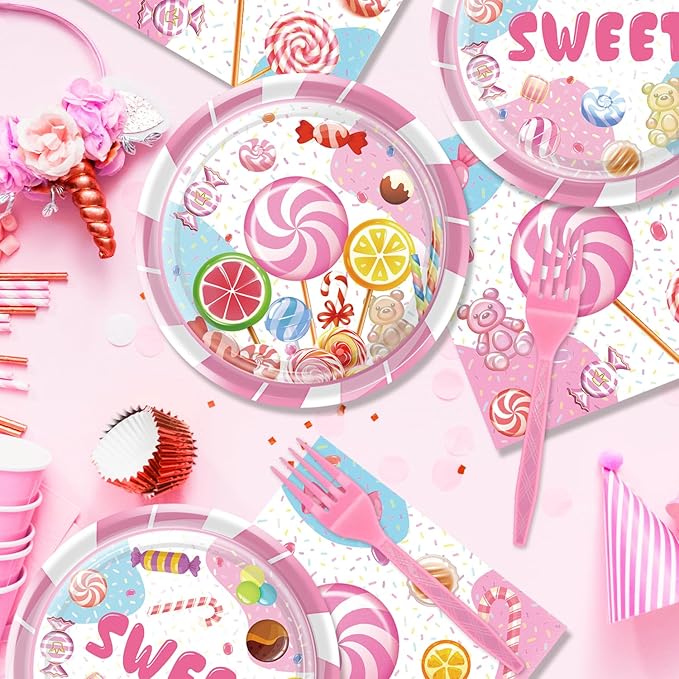 - 【Hosting a Memorable Candyland Party】Add a touch of magic to your party with our Candyland-themed party supplies! Featuring a dreamy pink background and colorful candy designs, it's like stepping into a candy wonderland. Each plate is adorned with adorable candy illustrations, making your party extra sweet and fun. Perfect for birthdays, baby showers, and any occasion where you want to create a magical atmosphere for your little princess!