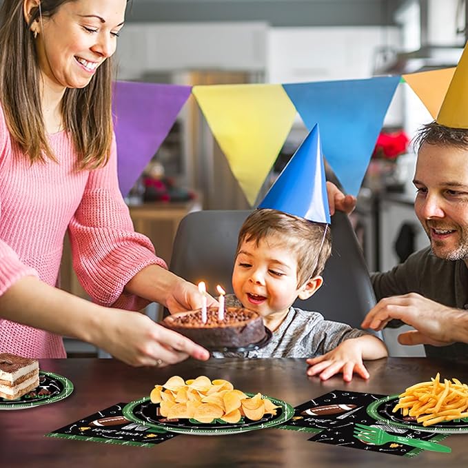 - 【Create a Memorable First Birthday Party! 】Beyond birthday parties, this versatile tableware set is ideal for your any football theme gathering. Imagine your little one wearing a tiny football helmet, sitting at a table adorned with football field designs - it's the perfect way to celebrate their special day!