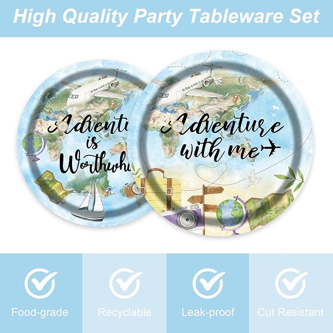 96Pcs Travel Themed Supplies Adventure Awaits Party Decorations Around the World Party Plates and Napkins Forks for 24 Guests - Disposable Tableware Travel for Baby Shower Birthday Decorations