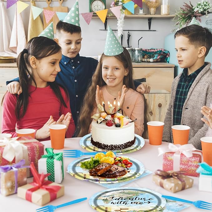 - - Unique Design:Our World travel party supplies are characterized by blue and decorated with maps of different shapes, creating a sense of mystery. This exquisite combination is perfect for parties on a round-the-world tour and map play, adding a touch of color to your party event