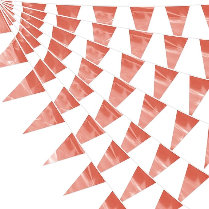- 【Rose Gold Pennant Bunting Set】: The total length of the Rose Gold Triangle banner is 32.8 feet, divided into 1 strips, each 32.8 feet long. 20Flag, Each Pennant Banner 20Flag Size: 7.87''/20cm width x 11.8''/30cm height for birthday Themed Party Decoration many occasions, and so on