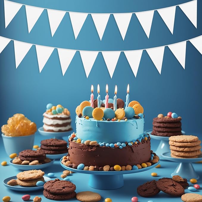 - 【White Pennant Bunting Set】: The total length of the White Triangle banner is 65.6 feet, divided into 2 strips, each 32.8 feet long. 40Flag, Each Pennant Banner 40Flag Size: 7.87''/20cm width x 11.8''/30cm height for birthday Themed Party Decoration many occasions, and so on
