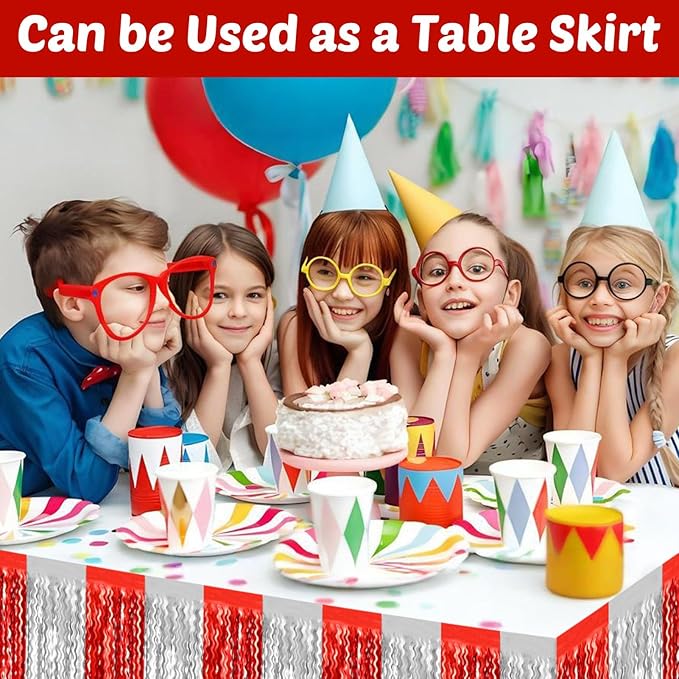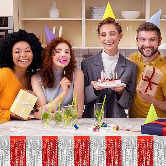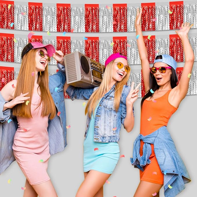 6 Pack 10 Feet Red Silver Wave Foil Fringe Garland Metallic Tinsel Streamers Banner Wall Hanging Curtain Backdrop for Parade Floats, Mother's Day, Easter, Wedding, Birthday Party Decoration