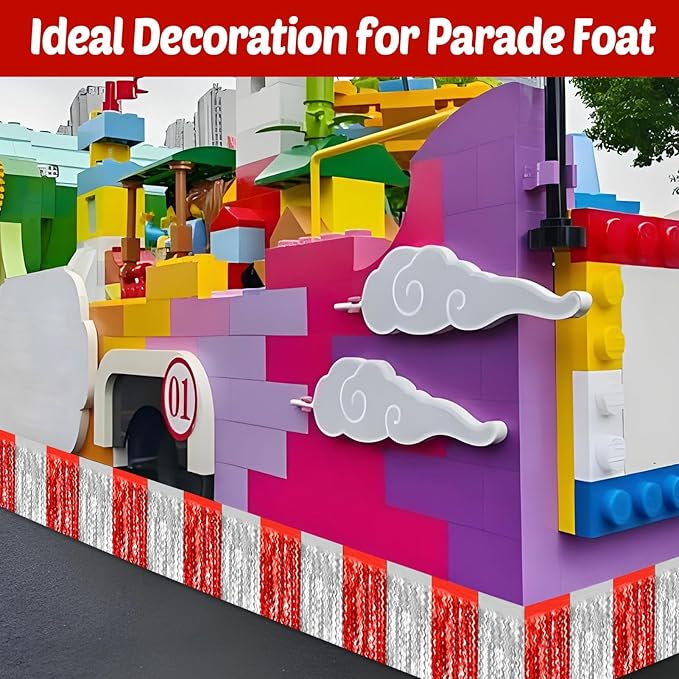 - Packaging and Size: 6 Packs/SET, parade float fringe enough quantity for your party decoration and Save your money. Each pack of tinsel fringe garland size is 3 m/ 10 feet in length and 30 cm/ 12 inch in width, enough length to decorate your parade float.
