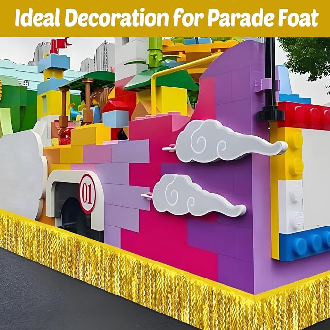 - Packaging and Size: 6 Packs/SET, parade float fringe enough quantity for your party decoration and Save your money. Each pack of tinsel fringe garland size is 3 m/ 10 feet in length and 30 cm/ 12 inch in width, enough length to decorate your parade float.
