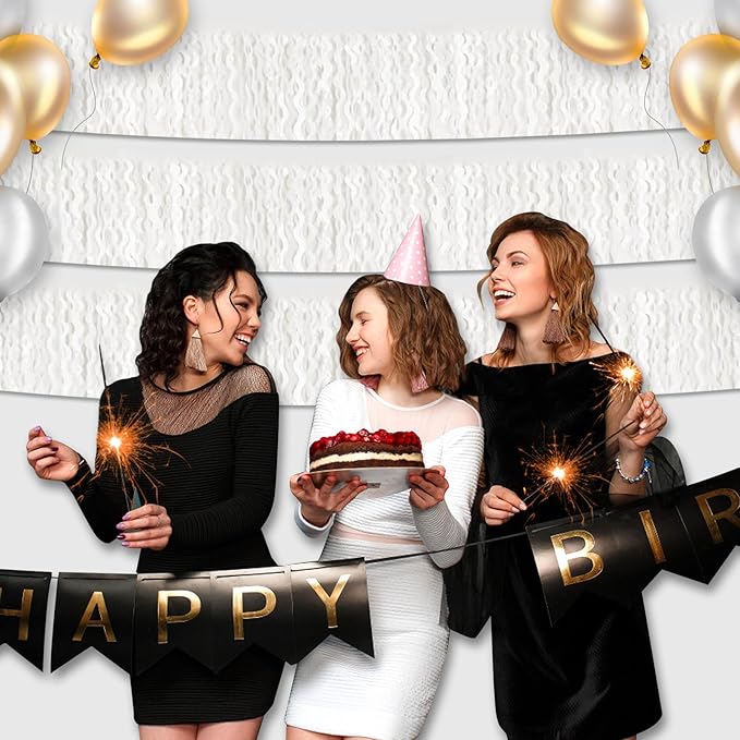 6 Pack 10 Feet White Wave Foil Fringe Garland Metallic Tinsel Streamers Banner Wall Hanging Curtain Backdrop for Parade Floats, Mother's Day, Easter, Wedding, Birthday Party Decoration