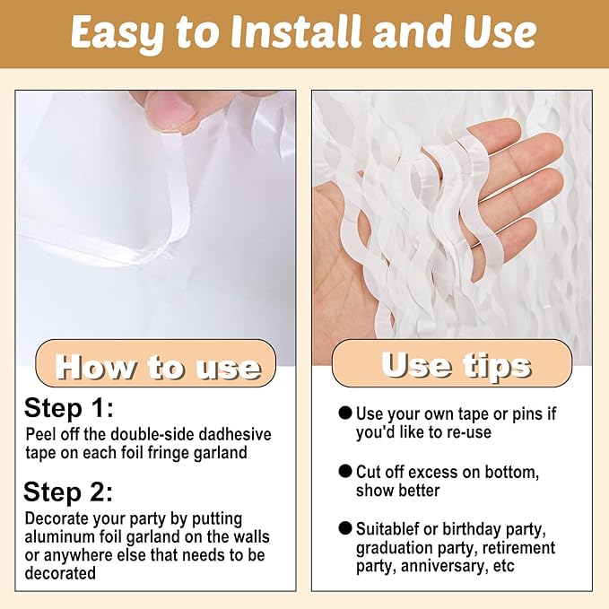 - Applicable Occasion: This shiny tinsel Foil Fringes garlands is also Perfect for parade floats, as shiny tassel banner, use to run along the top of a backdrop or anywhere you want to add shimmer. Suitable for Patriotic display, homecoming float, birthday party, theme party, Halloween, Christmas, New Year's Eve, bachelorette party, Gender Reveal Party, Anniversary, Hollywood Party, wedding, easter party, disco party decorations, carnival party, bridal shower, baby showers, graduations and more.