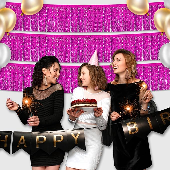 - Various Colors: Pair and match with different color fringe garland to achieve your desired color combination. Show off your creativity by pairing this Gold Foil Fringe party banner with other Fringe wall banner of different colors to achieve the color combination that you desired. Together with some balloons, led-lights, banners, pom-poms, swirls and Foil Fringe Curtain Backdrop you will be surprised and proud of the atmosphere and view you create.