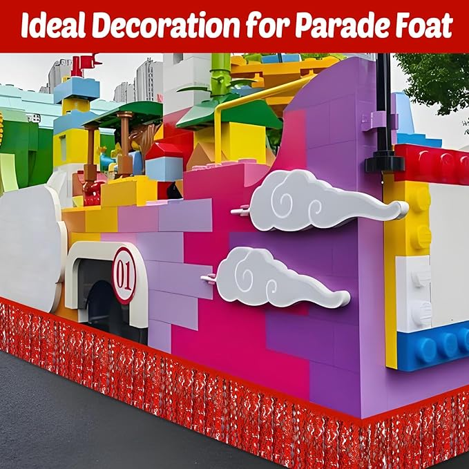 - Packaging and Size: 6 Packs/SET, parade float fringe enough quantity for your party decoration and Save your money. Each pack of tinsel fringe garland size is 3 m/ 10 feet in length and 30 cm/ 12 inch in width, enough length to decorate your parade float.