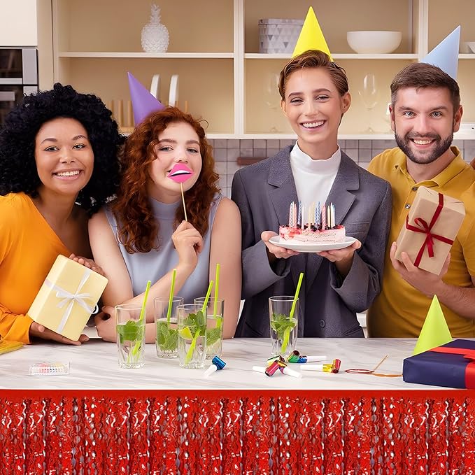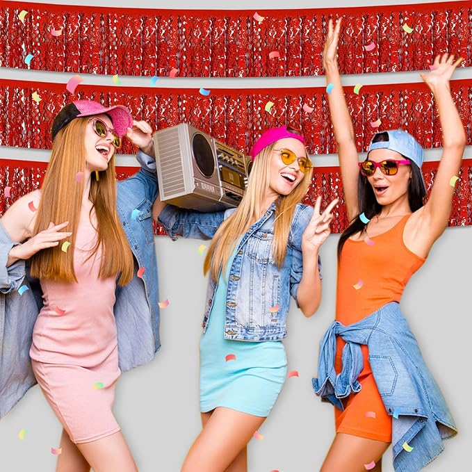 6 Pack 10 Feet Red Wave Foil Fringe Garland Metallic Tinsel Streamers Banner Wall Hanging Curtain Backdrop for Parade Floats, Mother's Day, Easter, Bachelorette, Wedding Party Decoration