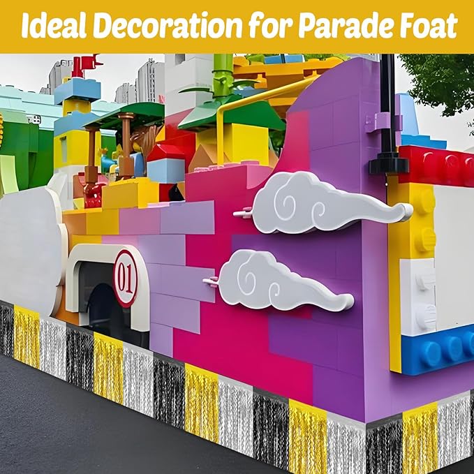 - Packaging and Size: 6 Packs/SET, parade float fringe enough quantity for your party decoration and Save your money. Each pack of tinsel fringe garland size is 3 m/ 10 feet in length and 30 cm/ 12 inch in width, enough length to decorate your parade float.