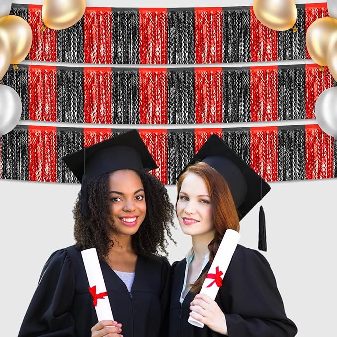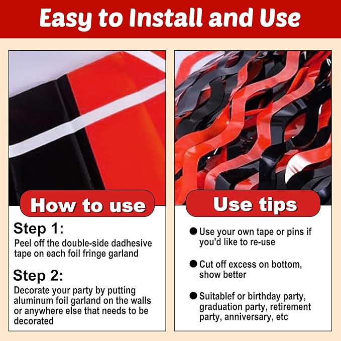 6 Pack 10 Feet Black Red Wave Foil Fringe Garland Metallic Tinsel Streamers Banner Wall Hanging Curtain Backdrop for Parade Floats, Mother's Day, Easter, Wedding, Birthday Party Decoration