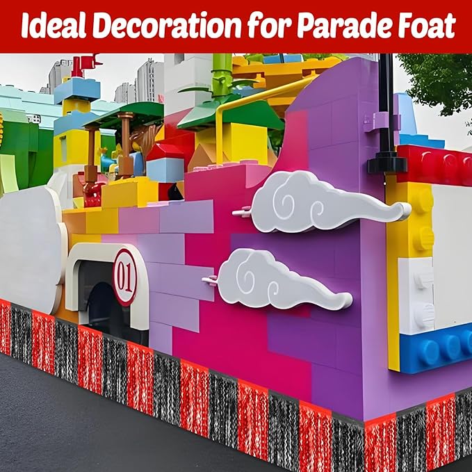 - Packaging and Size: 6 Packs/SET, parade float fringe enough quantity for your party decoration and Save your money. Each pack of tinsel fringe garland size is 3 m/ 10 feet in length and 30 cm/ 12 inch in width, enough length to decorate your parade float.