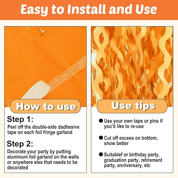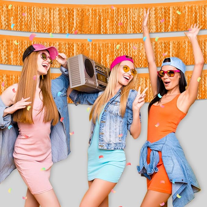 6 Pack 10 Feet Macaron Orange Wave Foil Fringe Garland Metallic Tinsel Streamers Banner Wall Hanging Curtain Backdrop for Parade Floats, Mother's Day, Easter, Wedding, Birthday Party Decoration