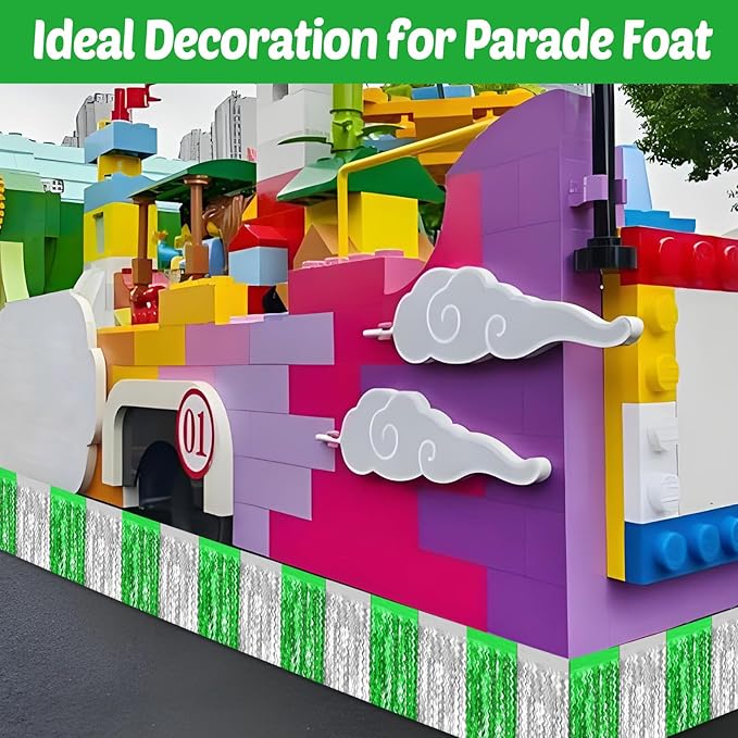 - Packaging and Size: 6 Packs/SET, parade float fringe enough quantity for your party decoration and Save your money. Each pack of tinsel fringe garland size is 3 m/ 10 feet in length and 30 cm/ 12 inch in width, enough length to decorate your parade float.