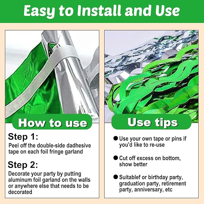 - Applicable Occasion: This shiny tinsel Foil Fringes garlands is also Perfect for parade floats, as shiny tassel banner, use to run along the top of a backdrop or anywhere you want to add shimmer. Suitable for Patriotic display, homecoming float, birthday party, theme party, Halloween, Christmas, New Year's Eve, bachelorette party, Gender Reveal Party, Anniversary, Hollywood Party, wedding, easter party, disco party decorations, carnival party, bridal shower, baby showers, graduations and more.
