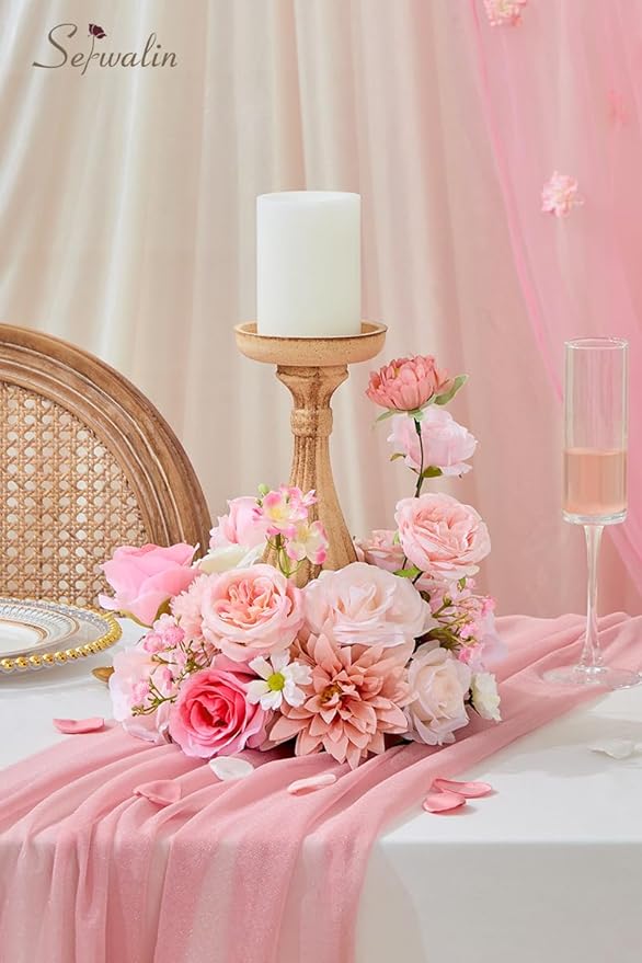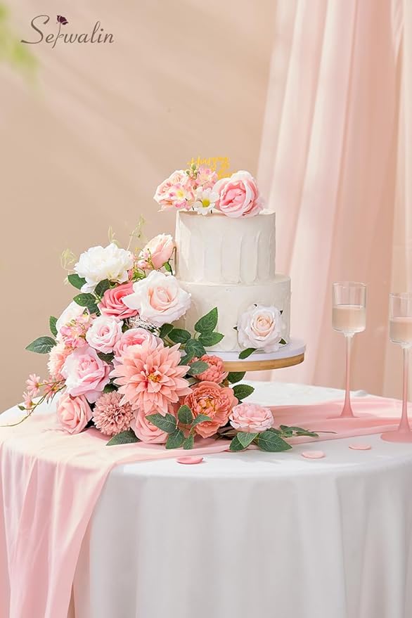 Serwalin Artificial Silk Flowers Abby Pink, Fake Flowers Stems for DIY Wedding Bouquets, Baby Shower Centerpieces, Cake Decor, Birthday Party & Home Decor
