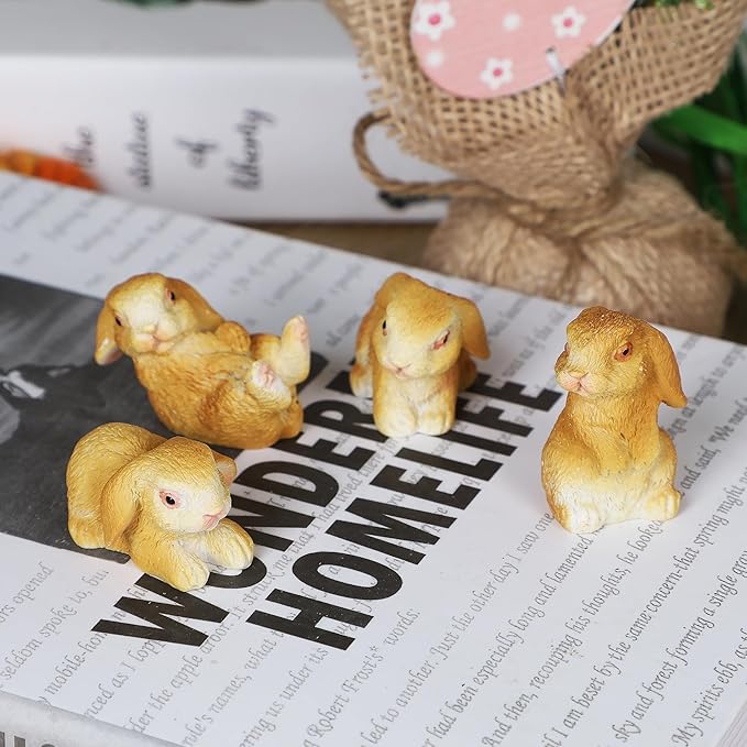 - High-Quality Resin Material: Each mini bunny decor is crafted from resin, ensuring long-lasting quality. These mini resin animals are waterproof, fade-resistant, and ideal for indoor or outdoor use, making them suitable for creative projects or seasonal displays.