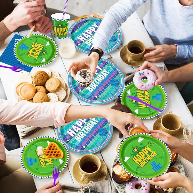 - ENJOY THE PARTY AND SAVE TIME: This disposable video game birthday party supplies set is made of environmentally friendly paper, which can help you not have to clean up after the event or party. Save time and energy, spend more quality time with your family or friends while enjoying the party.