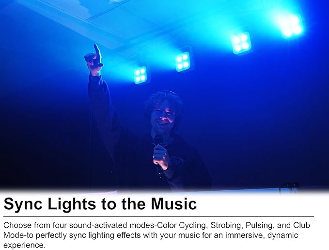- 4 SOUND MODES & 6 COLOR WHEELS: Enjoy dynamic lighting with 4 sound modes, including color cycling, strobing, and pulsing. Plus, use the 6 color wheels with 48 colors to customize your lighting effects without requiring DMX control.