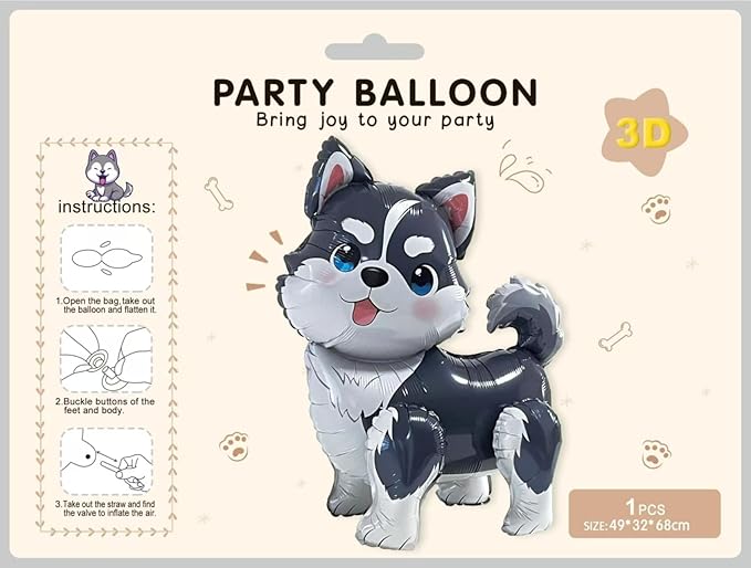 3D Animal Dog Balloons,Standing Pet Puppy Dog Balloon Husky Balloon For Birthday Party Supplies Decoration,Kids Animal Theme Doggy Mylar Foil Balloons Gift