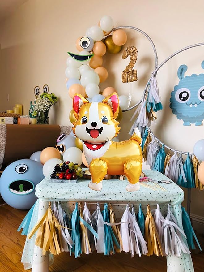 3D Pet Dog Foil Balloons,Puppy Dogs Corgi Standing Animal Party Supplies,Kids Baby Shower Animal Theme Birthday Party Decorations Gifts