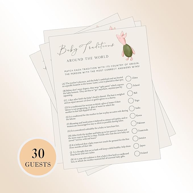 Winnie Baby Shower Games, Baby Traditions Around The World, Baby Shower Game Cards, Set of 30, Winnie The Pooh Party Favors, Baby Shower Party Games Supplies & Activities, Baby Shower Decorations