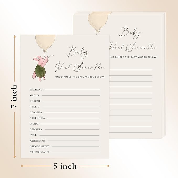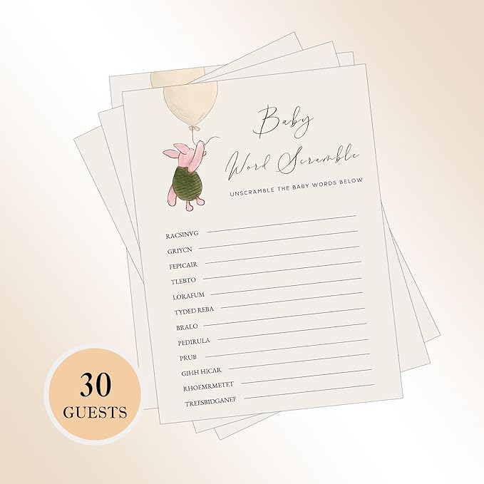 Winnie Baby Shower Games, Baby Word Scramble, Baby Shower Game Cards, Set of 30, Winnie The Pooh Party Favors, Baby Shower Party Games Supplies & Activities, Baby Shower Decorations
