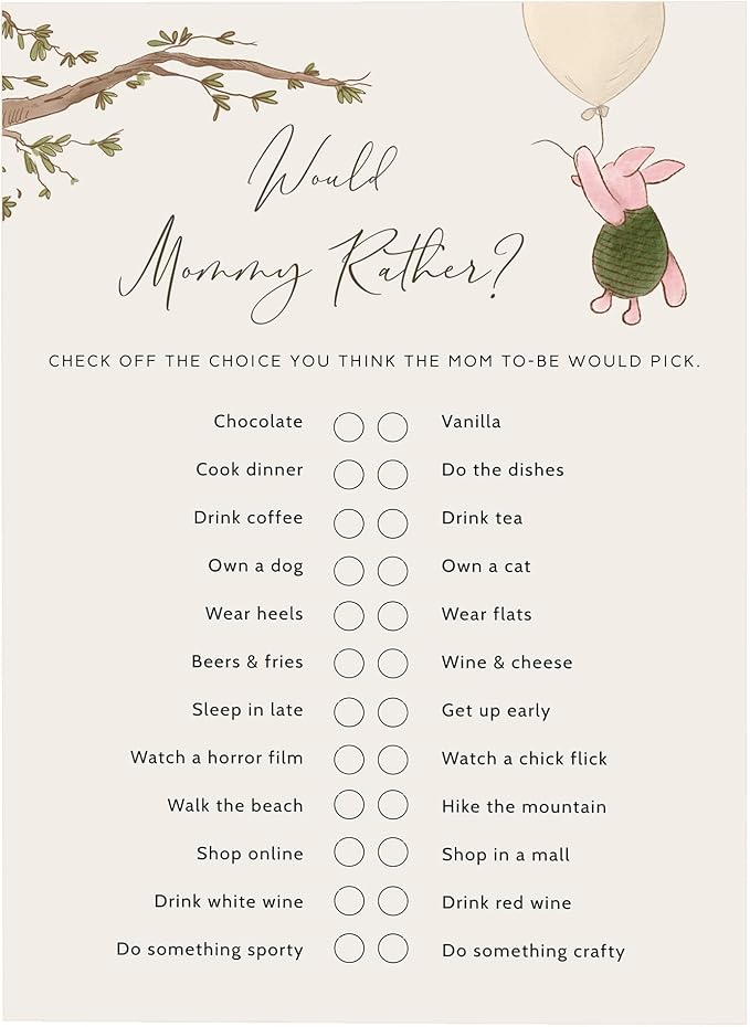Winnie Baby Shower Games, Would Mommy Rather, Baby Shower Game Cards, Set of 30, Winnie The Pooh Party Favors, Baby Shower Party Games Supplies & Activities, Baby Shower Decorations