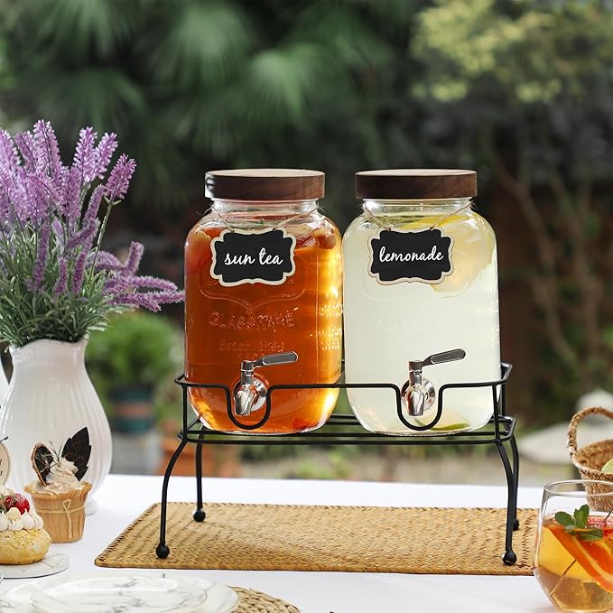 - Personalized Chalkboard Signs Included: The set includes a chalkboard sign and chalk, allowing you to creatively label your drinks and update the display as needed. Itβs a charming addition that adds a personalized touch to your beverage service.