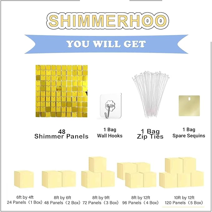 - ๐ PACKAGE INCLUDES: Set of 48 shimmering sequin panels ideal for creating a glamorous backdrop for birthdays, anniversaries, weddings, and parties. 48 pieces 12โx 12โ sequin panels, 1 bag of zip ties, 1 bag of extra tiles. Backdrop stand not included.