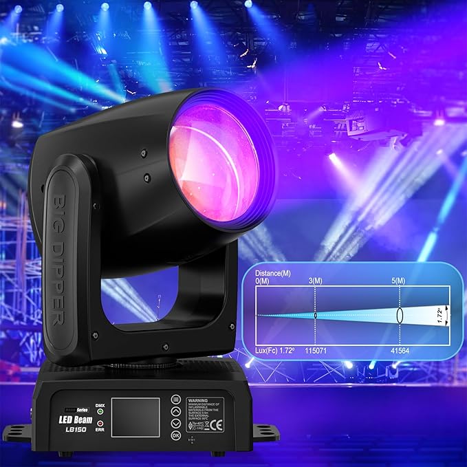 - 【Professional 150W LED Beam & 4 Control Modes】Experience powerful lighting with our 150W COB LED source (10,000K White), delivering a sharp, bright beam that cuts through any atmosphere. Choose from 4 intuitive modes: DMX512 for precise professional control, Sound-Active for instant party vibes, Auto for hands-free operation, and Master-Slave for multi-light synchronization. The built-in cooling fan ensures stable performance all night long.