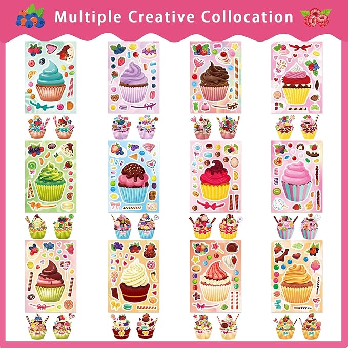 - Make Your Own Cupcake Stickers: This set of 36 cupcake stickers (size:8.26 x 5.9 inches) comes with 12 sweet designs to sweeten every craft project! Each cupcake sticker design is playful and eye-catching, stimulating children's creativity