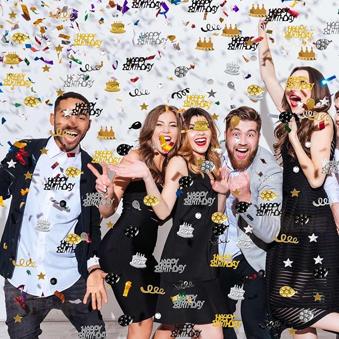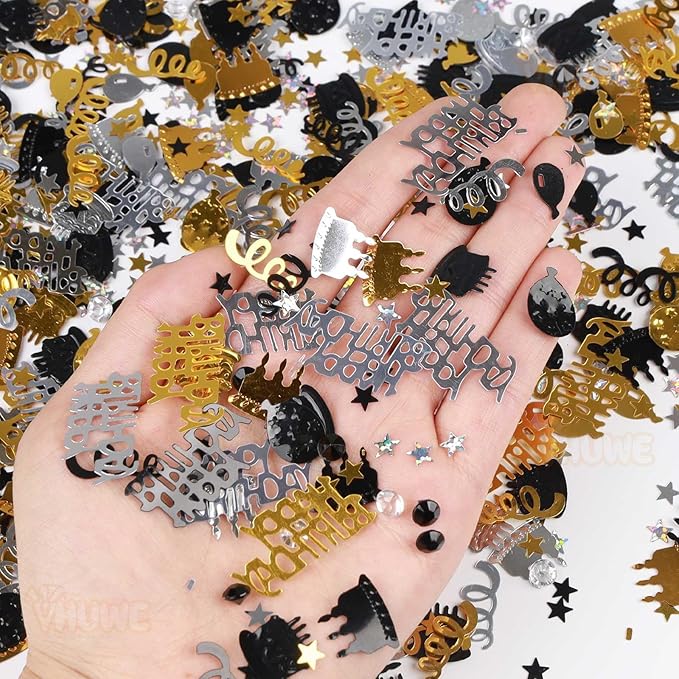 - Color : Black Gold Silver Birthday Confetti