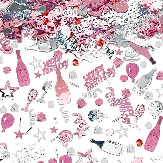 VHUWE Happy Birthday Confetti, 1.6 oz Rose Gold Silver Cake Balloon Star Goblet Bottle Glitter Confetti for Happy Birthday Party Decorations Boys Girls Kids Women Men Birthday Table Decorations