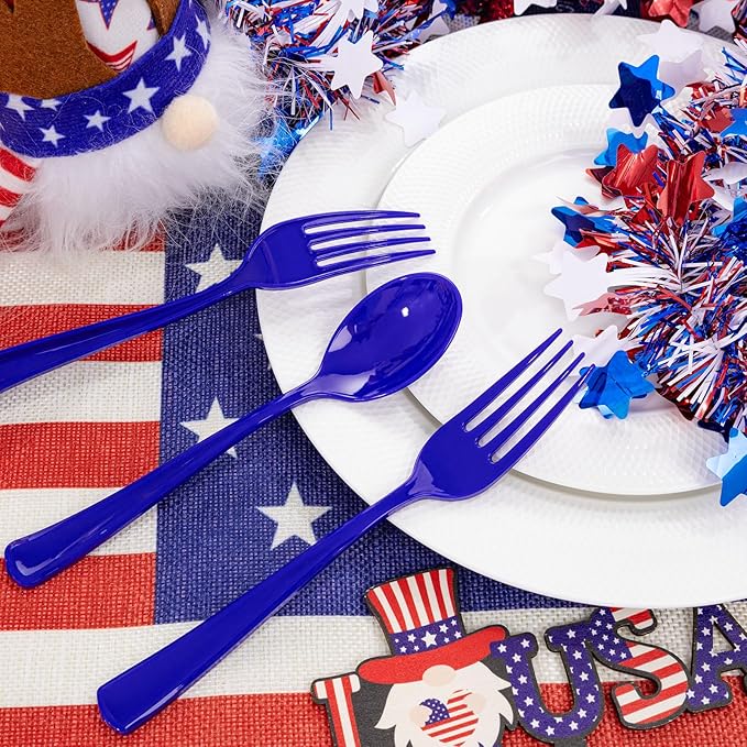 - Elegant and Convenient: The blue plastic cutlery feel smooth and shiny, maintaining the standard of luxury you want. The rolled silverware disposable are very clear and convenient for you dinners. You can throw them away afterwards without having to wash them.
