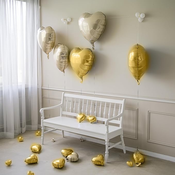 - Versatile Decorative Accent: Celebrate in style with our versatile cream white and champagne gold heart balloons, perfect for a myriad of events. Whether it's a birthday bash, baby shower, Valentine's Day festivities, a wedding, or an anniversary, these balloons fit seamlessly. Use them to create impressive balloon bouquets, mix and match sizes to create layered, dynamic displays that enhance the ambiance of your party space.