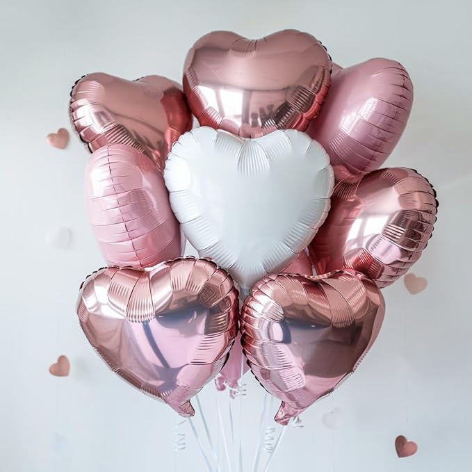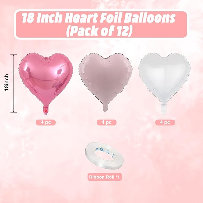 - Charming Pink White Heart Balloons: Elevate your celebration with our set of 12 heart-shaped light pink white balloons, each measuring 18 inches. Accompanied by a ribbon, these balloons are ideal for creating a festive and loving atmosphere at any special event.