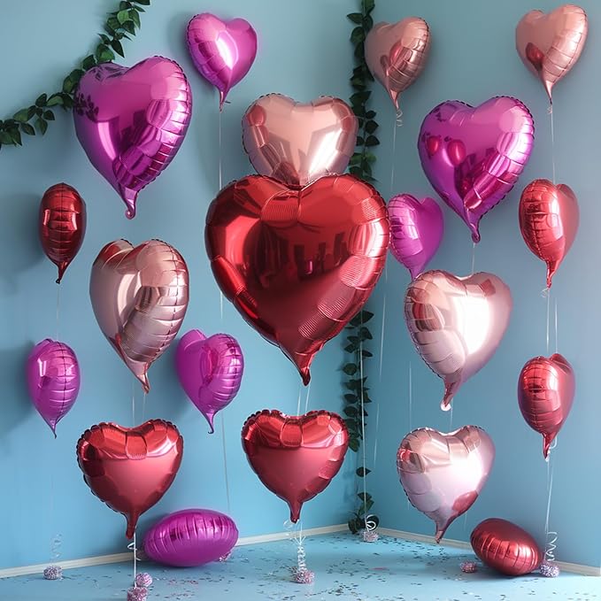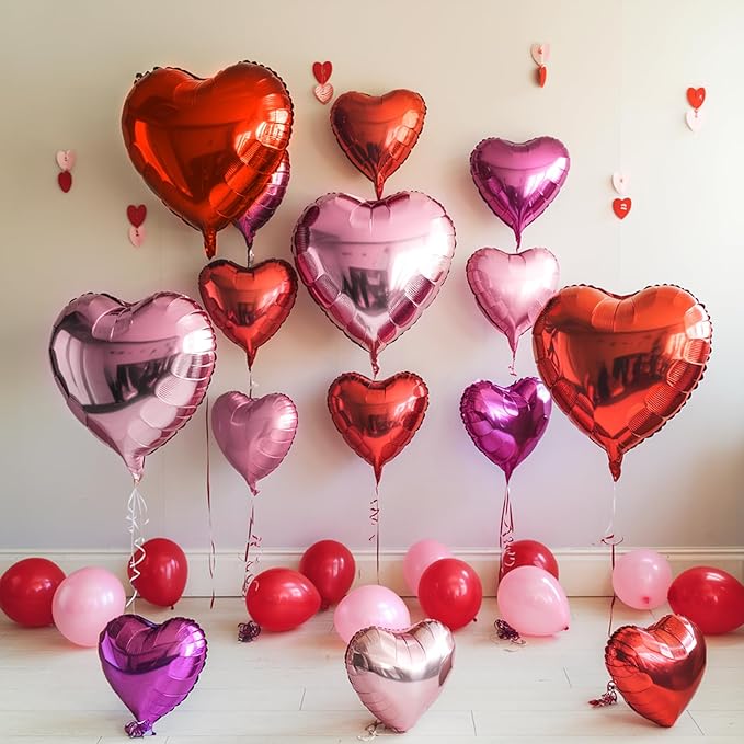 - Charming Red Pink Heart Balloons: Elevate your celebration with our set of 19 heart-shaped pink balloons, include 18in heart balloons (pink x 3, hot pink x 3, red x 3), 10in heart balloons (pink x 3, hot pink x 3, red x 3). Accompanied by a ribbon and straw, these balloons are ideal for creating a festive and loving atmosphere at any special event.