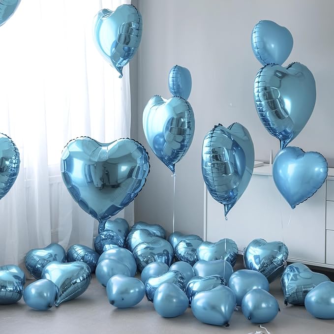 - Charming Blue Heart Balloons: Elevate your celebration with our set of 19 heart-shaped blue balloons, include 9 x 18in and 10 x 10in light blue heart foil balloons. Accompanied by a ribbon and straw, these balloons are ideal for creating a festive and loving atmosphere at any special event.