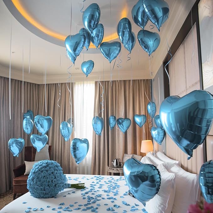 - Exceptional Craftsmanship: Elevate your decorations with our stunning 18-inch and 10-inch light blue aluminum foil heart balloons. Crafted from top-notch aluminum foil, they feature a brilliant metallic finish that adds a touch of sophistication to any event. Sturdy and meticulously designed, these balloons retain their shape and vibrancy, commanding attention throughout your celebration.