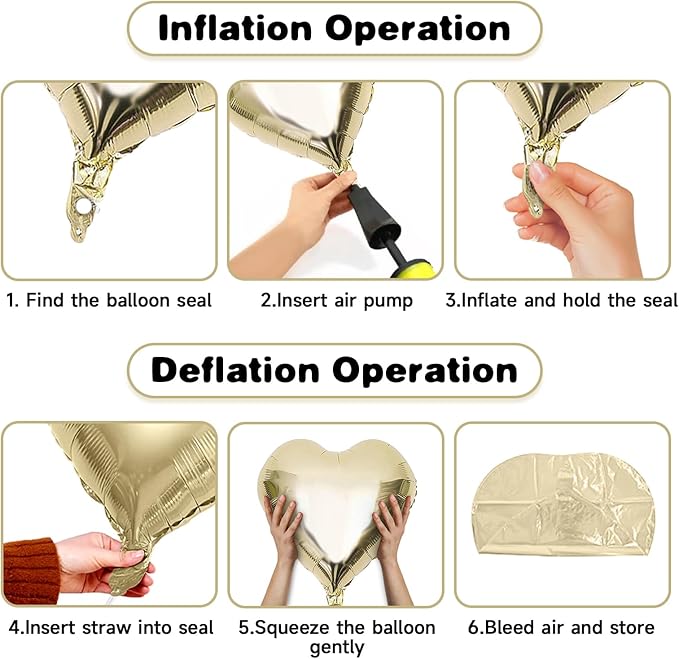 - Hassle-Free Setup: hassle-free decoration with our heart balloons that can be inflated effortlessly with either air or helium (optimal inflation is 85%-90% to prevent over-inflation). The convenient self-sealing valve locks in the air, ensuring long-lasting inflation. Plus, you can deflate them using a straw for future use, making them a versatile option for repeat celebrations.