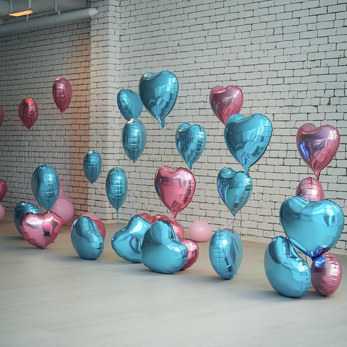 - Exceptional Craftsmanship: Elevate your decorations with our stunning 18-inch and 10-inch blue pink aluminum foil heart balloons. Crafted from top-notch aluminum foil, they feature a brilliant metallic finish that adds a touch of sophistication to any event. Sturdy and meticulously designed, these balloons retain their shape and vibrancy, commanding attention throughout your celebration.