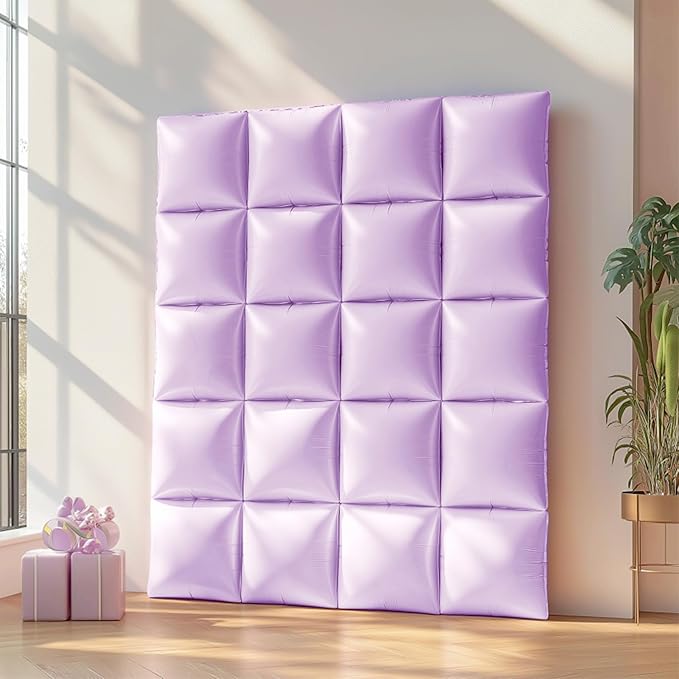 - Valuable Package: You will receive 2 straws and 25pcs two sided pastel purple square foil balloon wall. Each square balloon measures 19*19 inches before blowing and 13*13 inches after blowing. Our foil balloon wall backdrop is crafted from high quality mylar material. Compared to latex balloons, aluminum foil balloons can maintain their shape for a longer period of time and are less likely to leak or pop