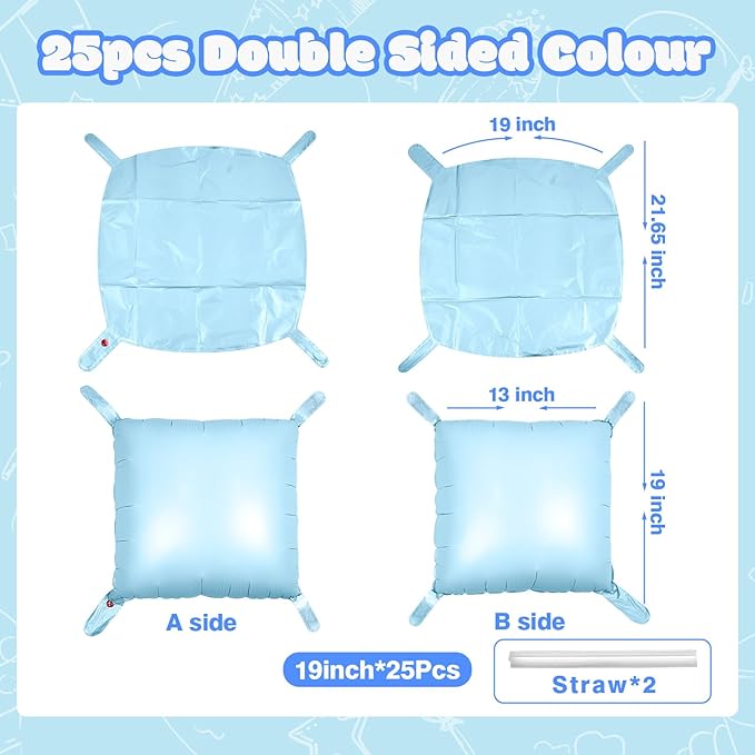 - Valuable Package: You will receive 2 straws and 25pcs two sided pastel blue square foil balloon wall. Each square balloon measures 19*19 inches before blowing and 13*13 inches after blowing. Our foil balloon wall backdrop is crafted from high quality mylar material. Compared to latex balloons, aluminum foil balloons can maintain their shape for a longer period of time and are less likely to leak or pop