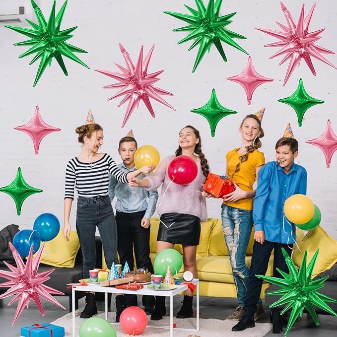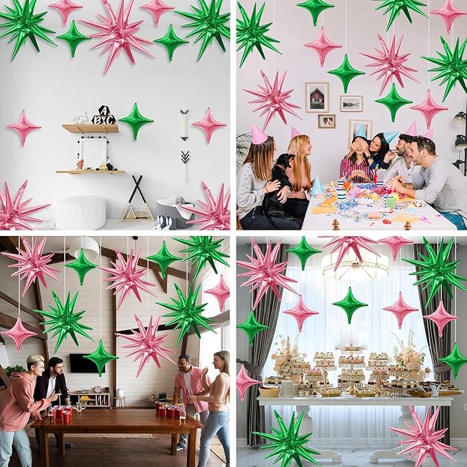 - Pink Green Star Balloons Set:Package include 6pcs 22Inch explosion star balloons(green x 3,pink x 3),10pcs 10Inch four pointd star balloons(green x 5,pink x 5). Large enough to help you better decorate your party.