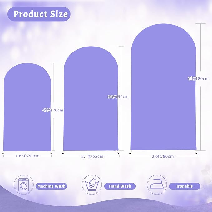 (7.2FT, 6.6FT, 6FT) Wedding Arch Cover Set of 3 Lavender Spandex Fitted Arch Cover for Round Top Chiara Backdrop Stand Covers for Birthday Party Banquet Photo Background Decoration